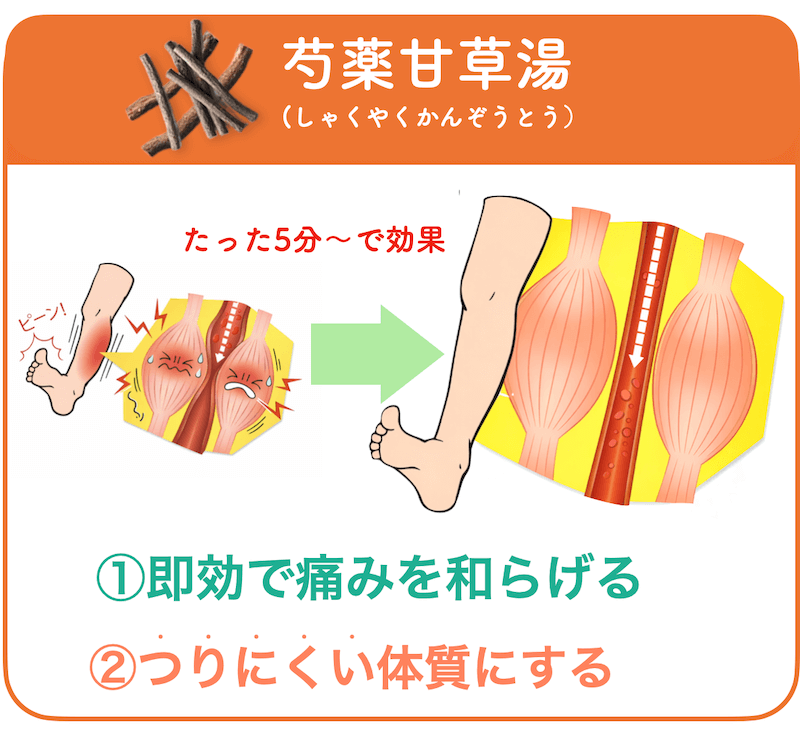 こむら返り以外にも、腹痛、腰痛、月経痛など、急に生じる“つり”や“けいれん性の痛み”に幅広く適応があります。