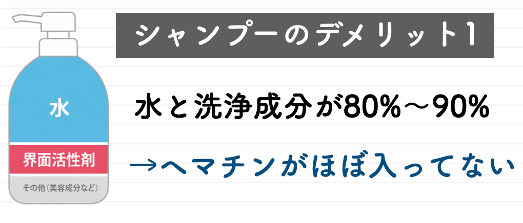 シャンプーは頭皮や髪の汚れ落としがメインで、ヘマチンがほとんど配合できないのです。
