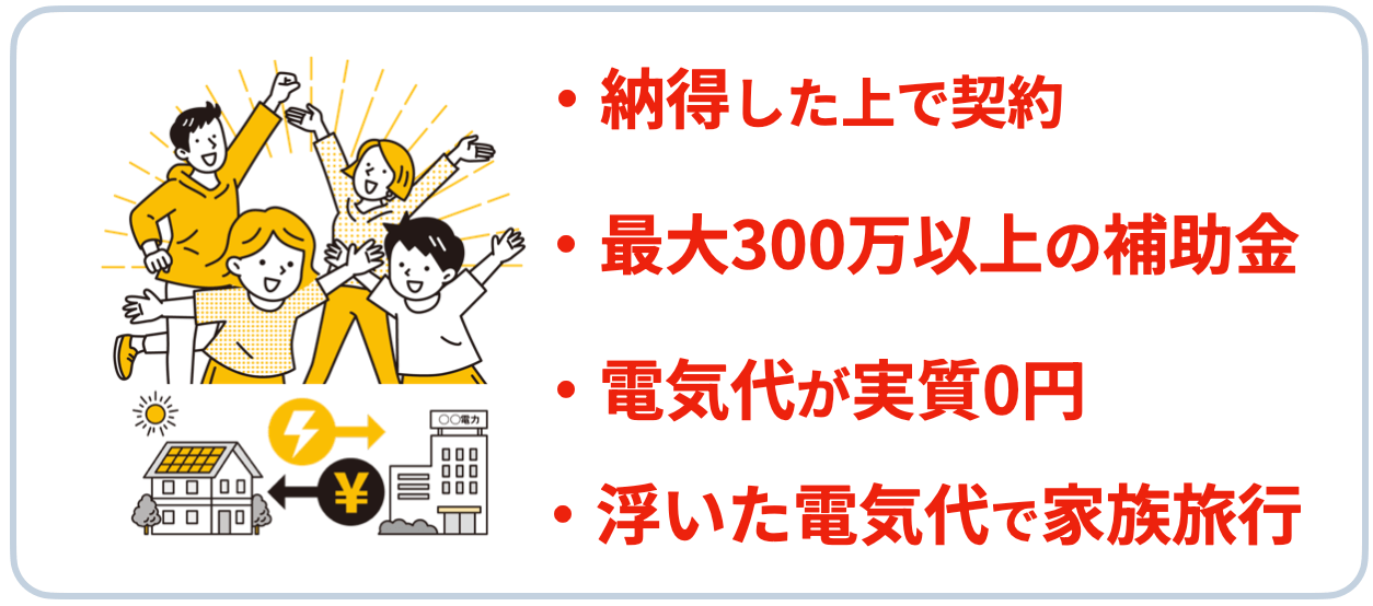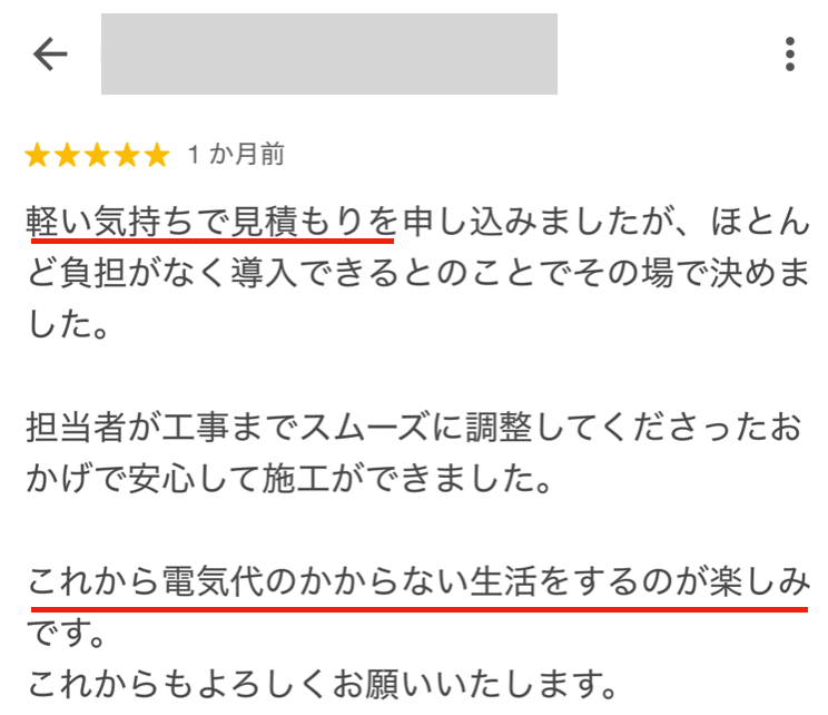 電気代の削減や補助金の恩恵が十分に見込めない場合は、「おすすめできない」と正直にお伝えしています。