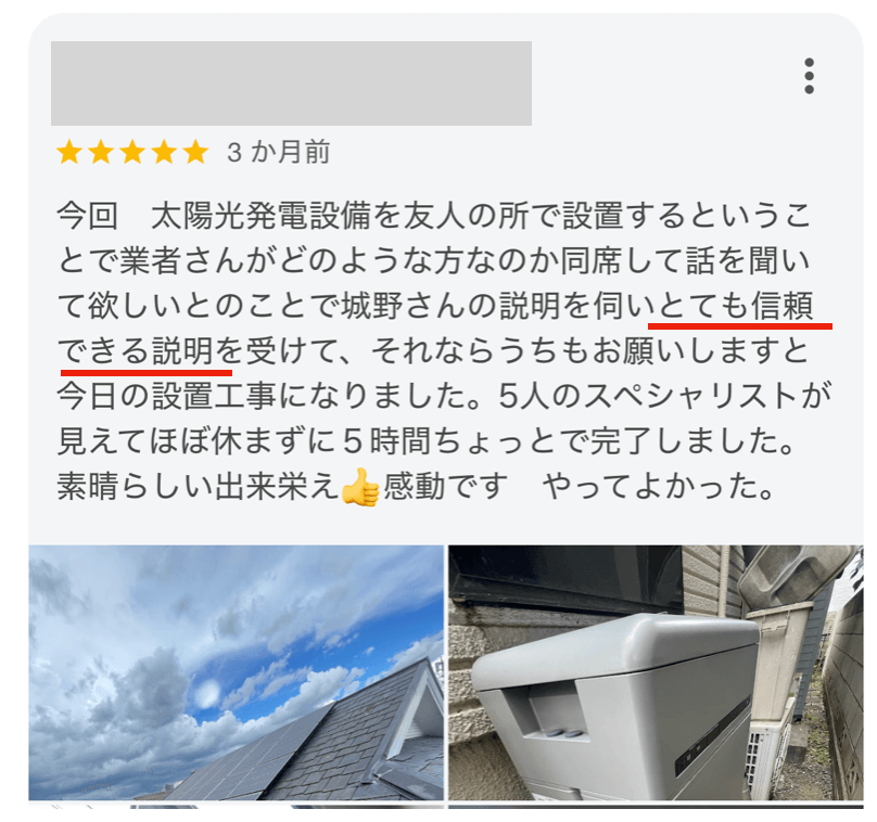 その結果、信頼できそうであれば設置の相談に進むと良いと思います。