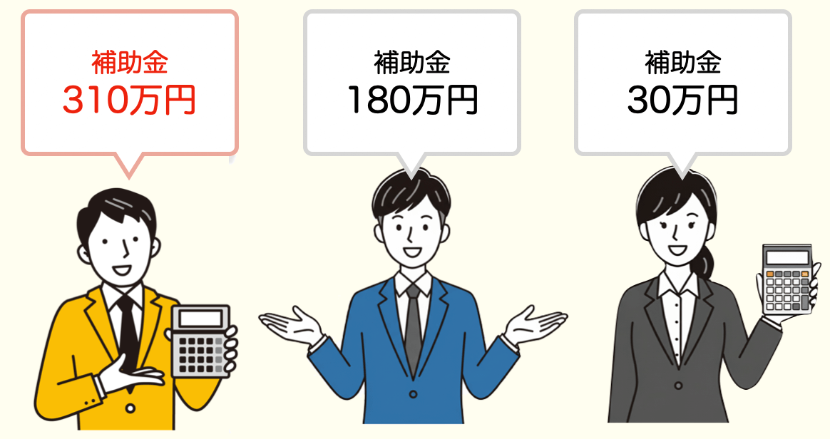 あたかも頼めば誰でも高額補助金を貰えるかのように