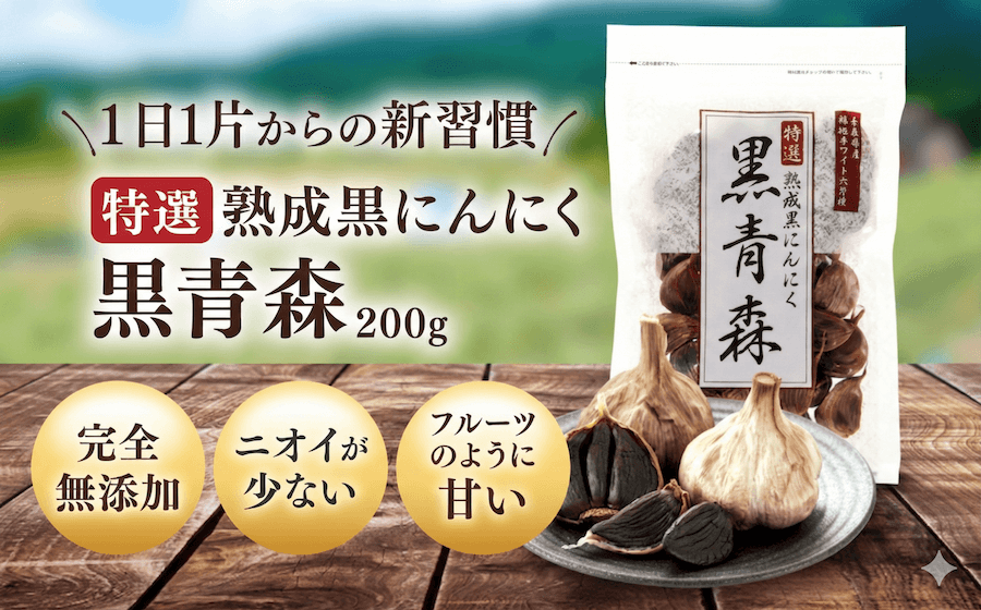 今回の比較の結果、産地ブランド・成分データ・価格設定のすべてにおいておすすめしたいのが『熟成黒にんにく 黒青森』です。