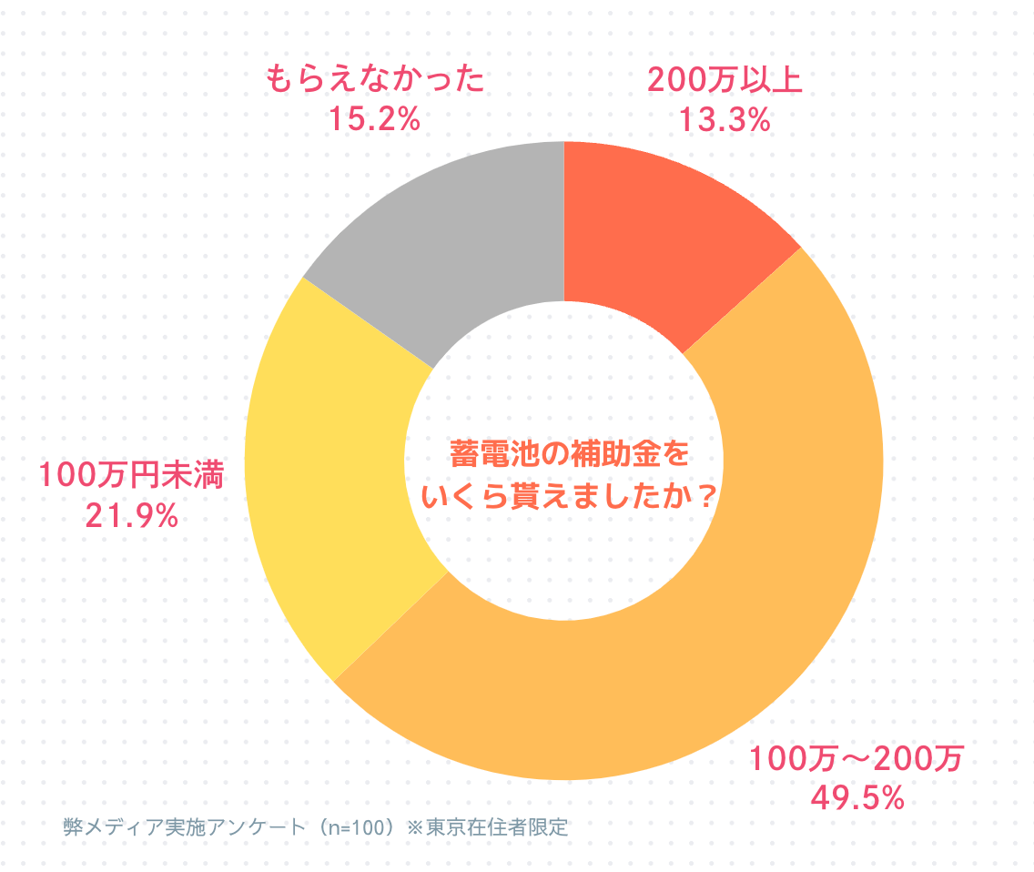 補助金の金額は、住んでいる地域だけではなく、設置する蓄電池や家庭の規模、電気の使用状況によっても違います。