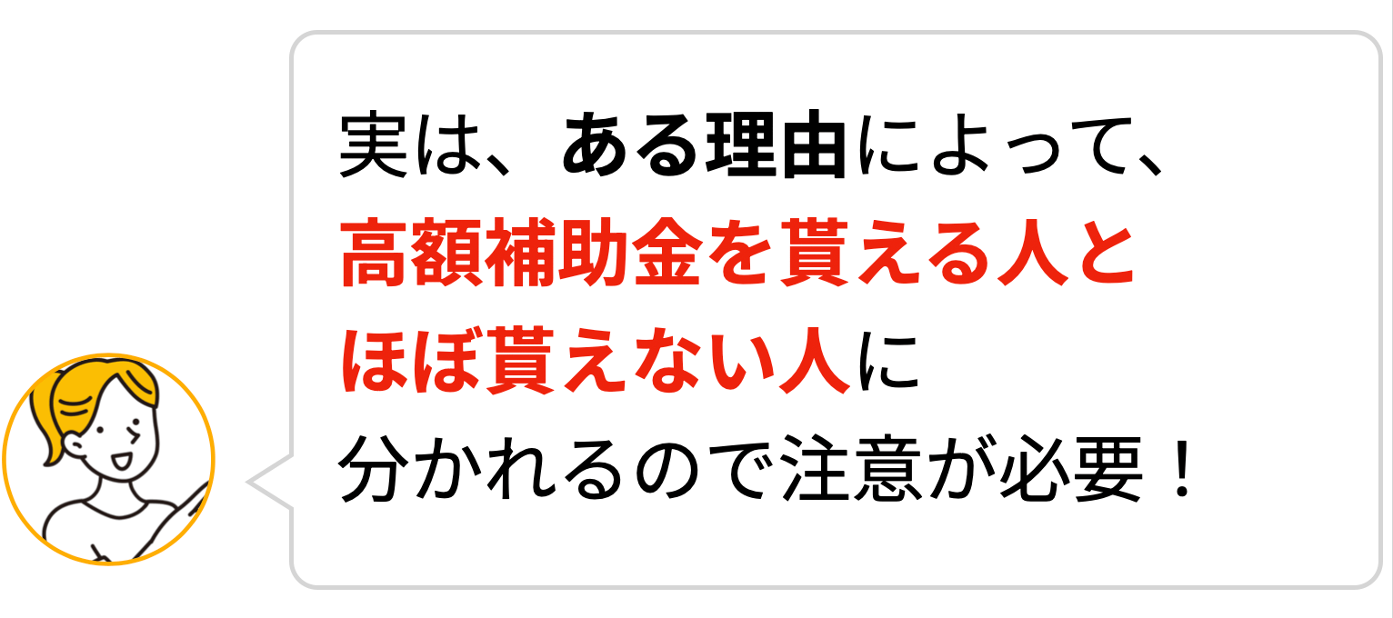 つまり、各家庭の条件次第で、誰しもが高額補助金を貰えるわけではないということ。