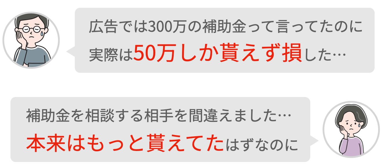 補助金という制度はかなり複雑なだけに「こんなはずじゃなかった…」と失敗してしまう人が多いです。