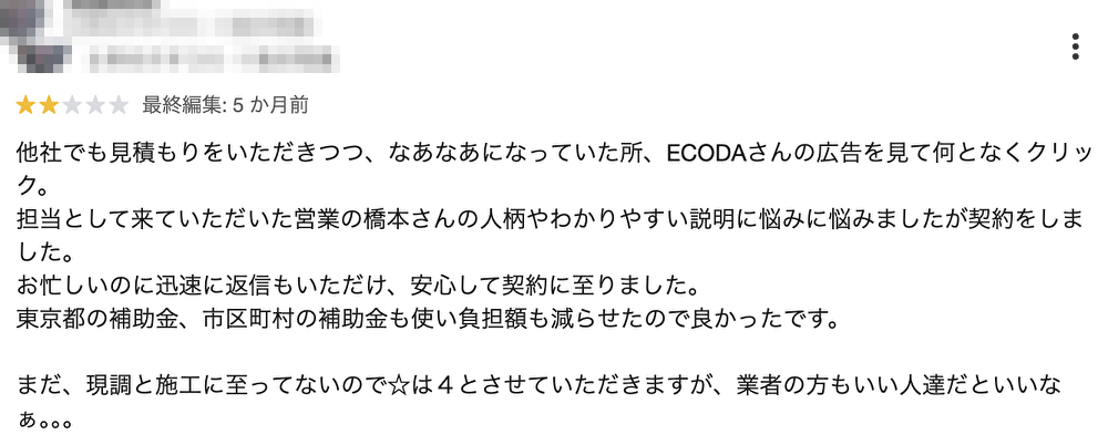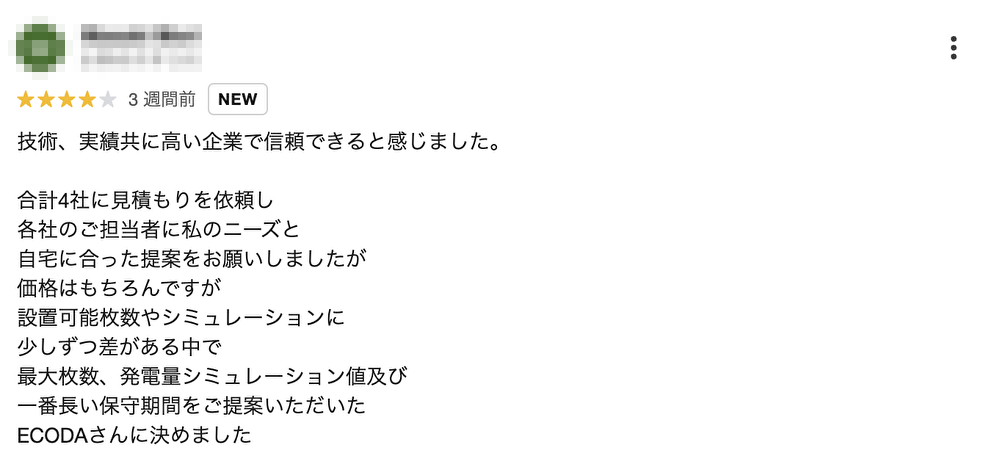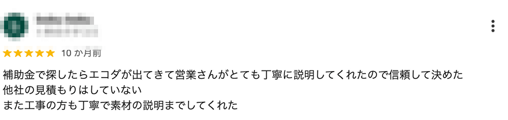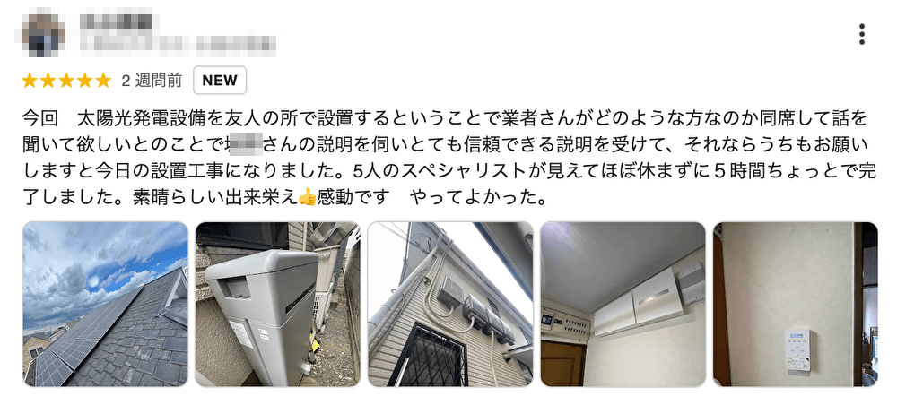 「説明がわかりやすい」「補助金やシミュレーションまで丁寧に対応してくれた」といった声も多く、ただ売るだけの会社ではないことが伝わってきます。
