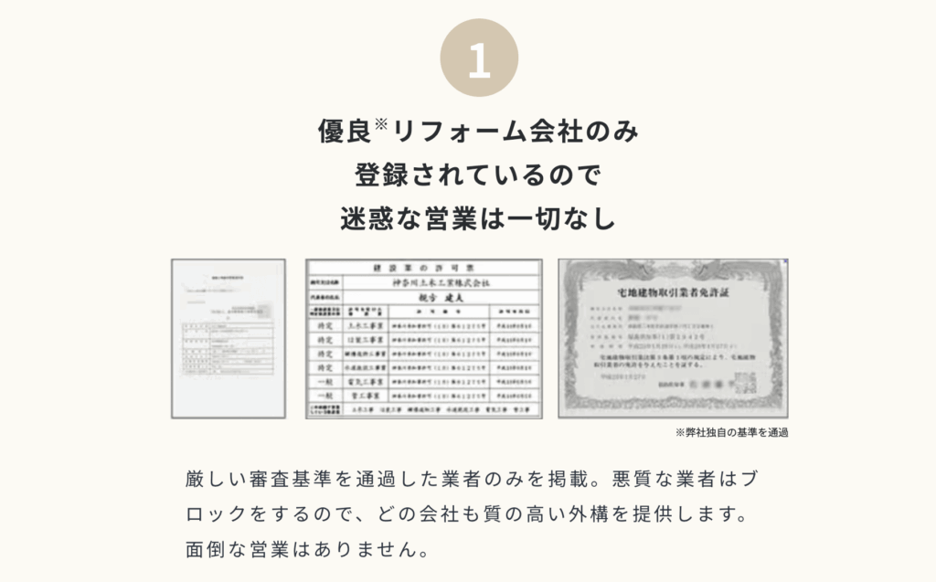 優良認定した約600社の提携業社から、あなたにぴったりなリフォーム会社を紹介してくれます。