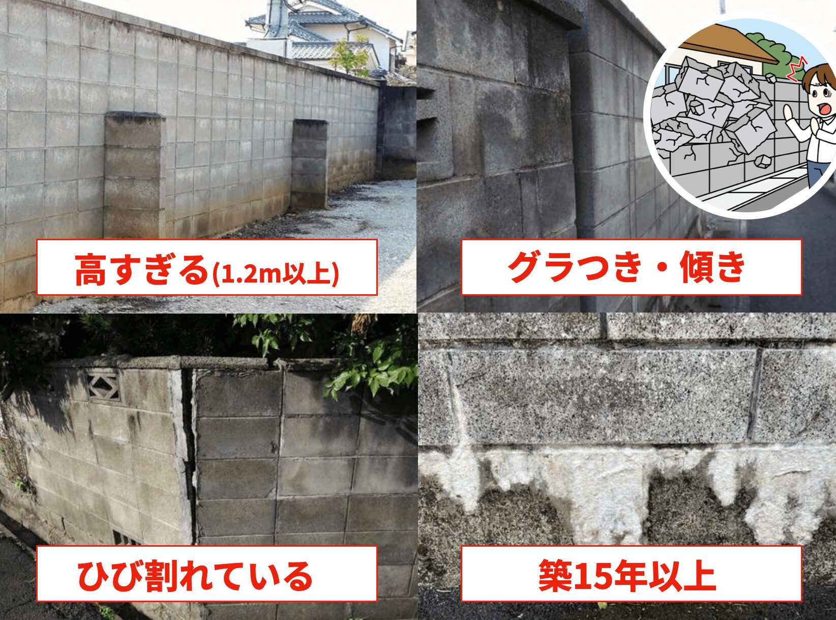 もしあなたのお家の塀がこのような状態なら、補助金を利用しつつキレイな塀にリフォームできるかもしれません。