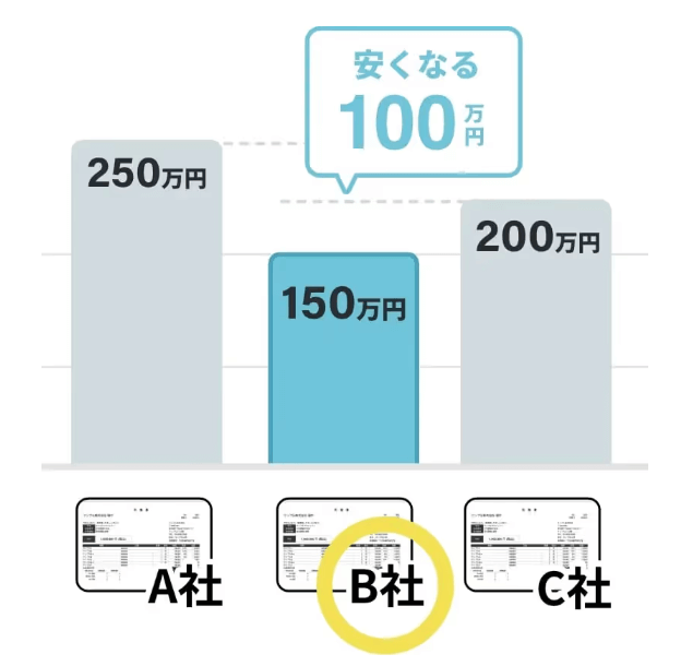 つまり、ただ安いだけじゃなく「より安く、よりデザインが良い」撤去方法やリフォームを複数提案から選ぶことができるんです。